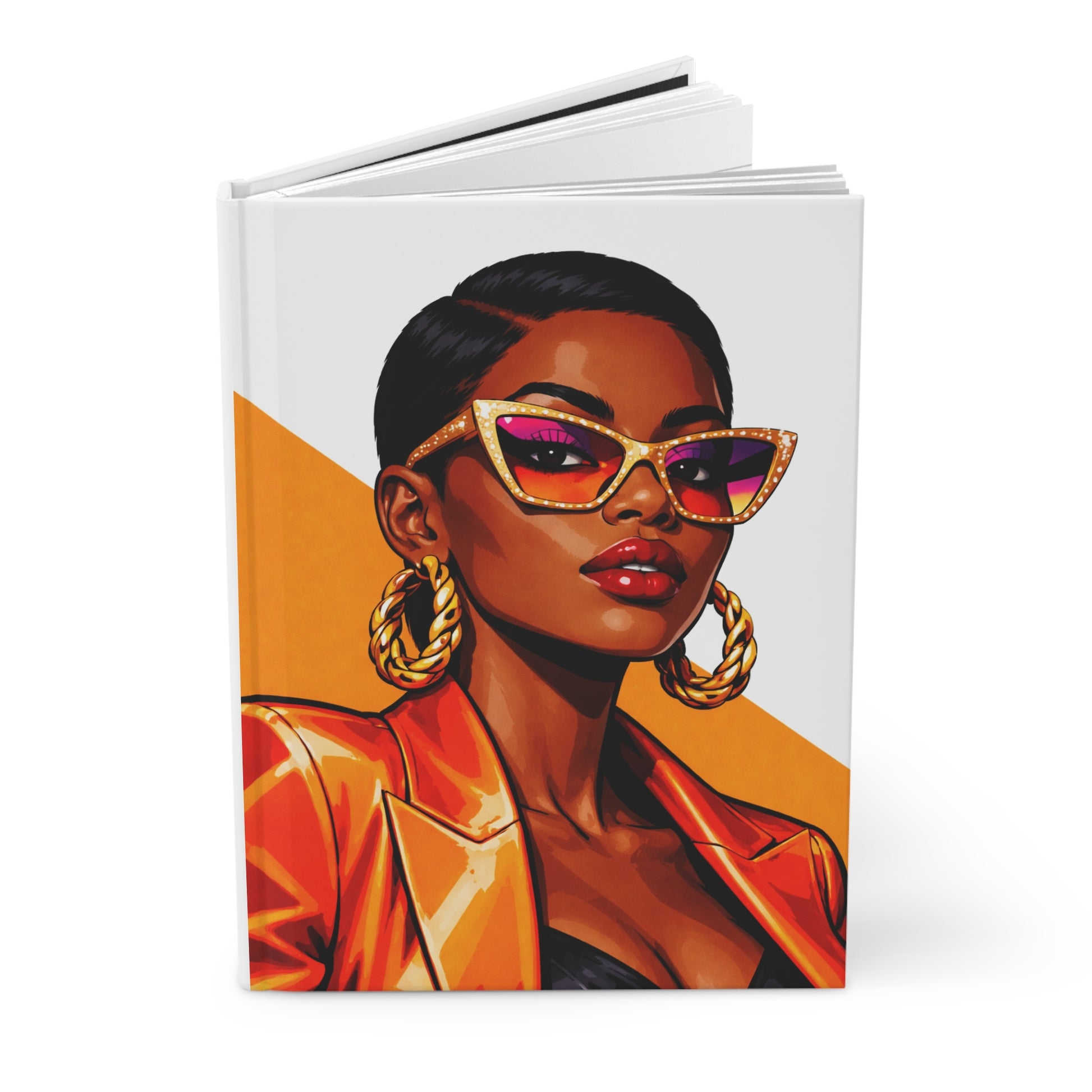 Bold Fashionista Hardcover Journal — Stylish Sunglasses Woman Notebook
